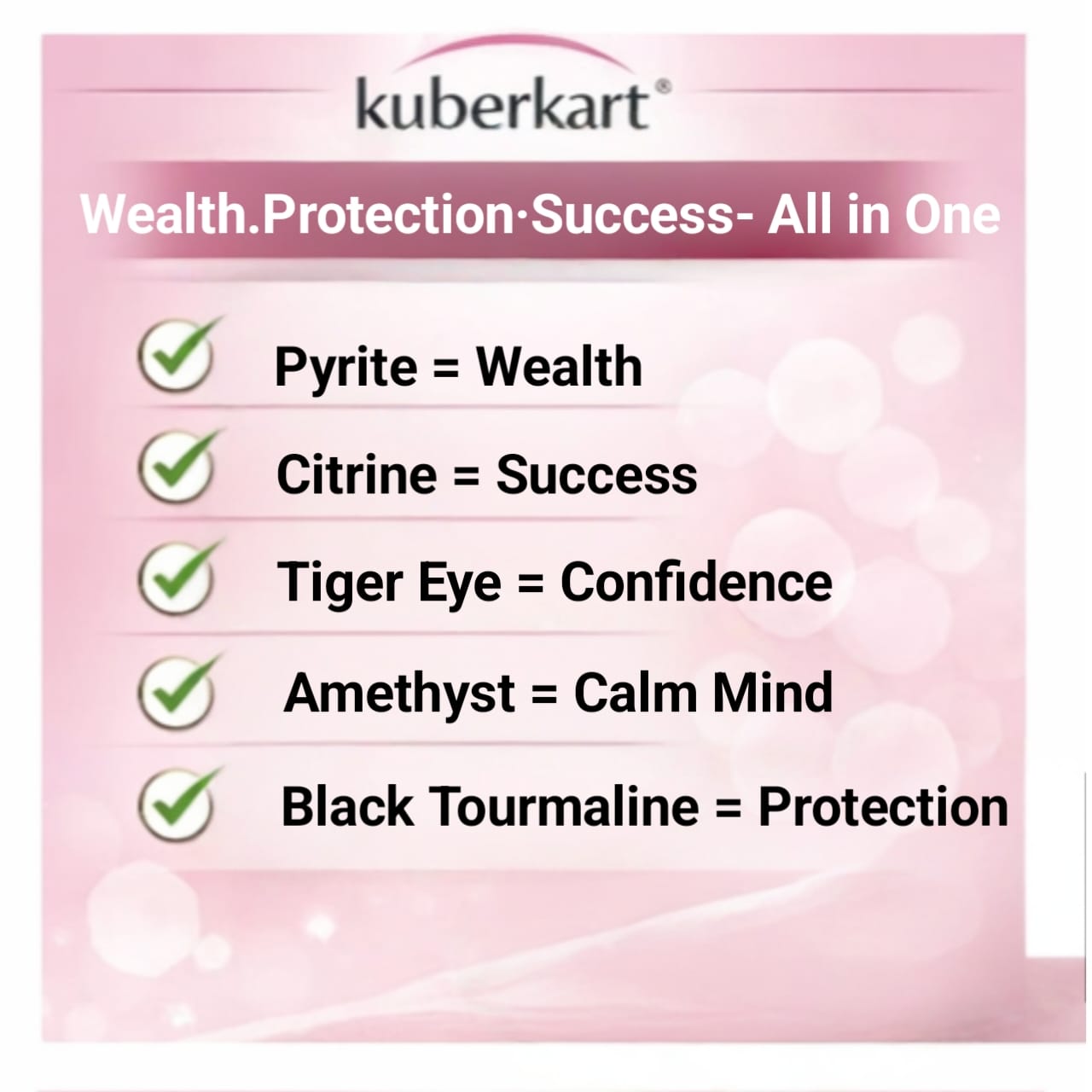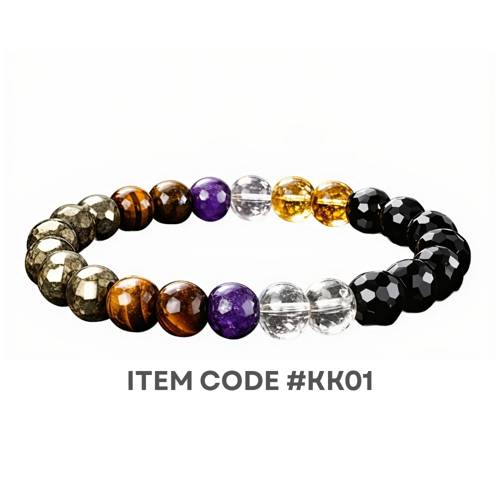 The KuberKart 5 Crystals Money Magnet Bracelet is a powerful fusion of prosperity, protection, clarity, and confidence designed for those who are serious about financial growth and success. Pyrite attracts wealth and abundance, Citrine energizes money flow and business opportunities, Tiger Eye builds confidence and smart decision-making, Amethyst keeps your mind calm and focused, while Black Tourmaline protects you from negativity and financial setbacks. Together, these five high-vibration crystals create a balanced energy shield that not only draws prosperity but also helps you maintain it with wisdom and stability. It’s not just a bracelet — it’s your daily reminder to think big, act smart, and attract abundance effortlessly.